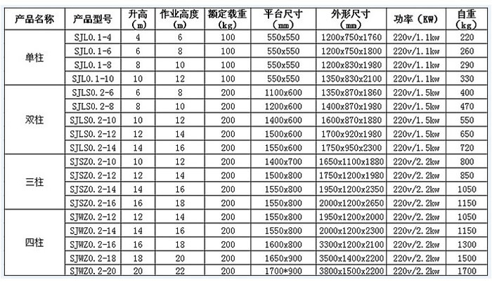 特點:采用鋁合金材料,具有造型美觀、體積小、重量輕、升降平穩、安全可靠等優點。它輕盈的外觀,能在小的空間內發揮好的舉升能力。立柱升降系統,具有載量大,穩固性強,平臺面積大,推行方便等特點。